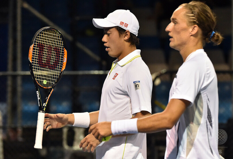 錦織は5日、ウクライナのアレクサンドル・ドルゴポロフ(Alexandr Dolgopolov)とペアを組んで、男子ダブルスに出場した。(c)AFP