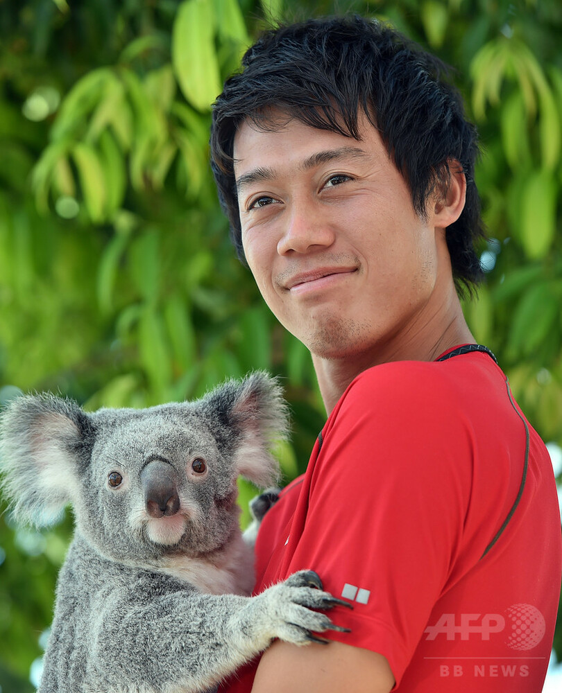 【1月6日 AFP】テニス、ブリスベーン国際(Brisbane International 2015)に出場している男子テニスの錦織圭(Kei Nishikori)が、オーストラリアのコアラとたわむれた。