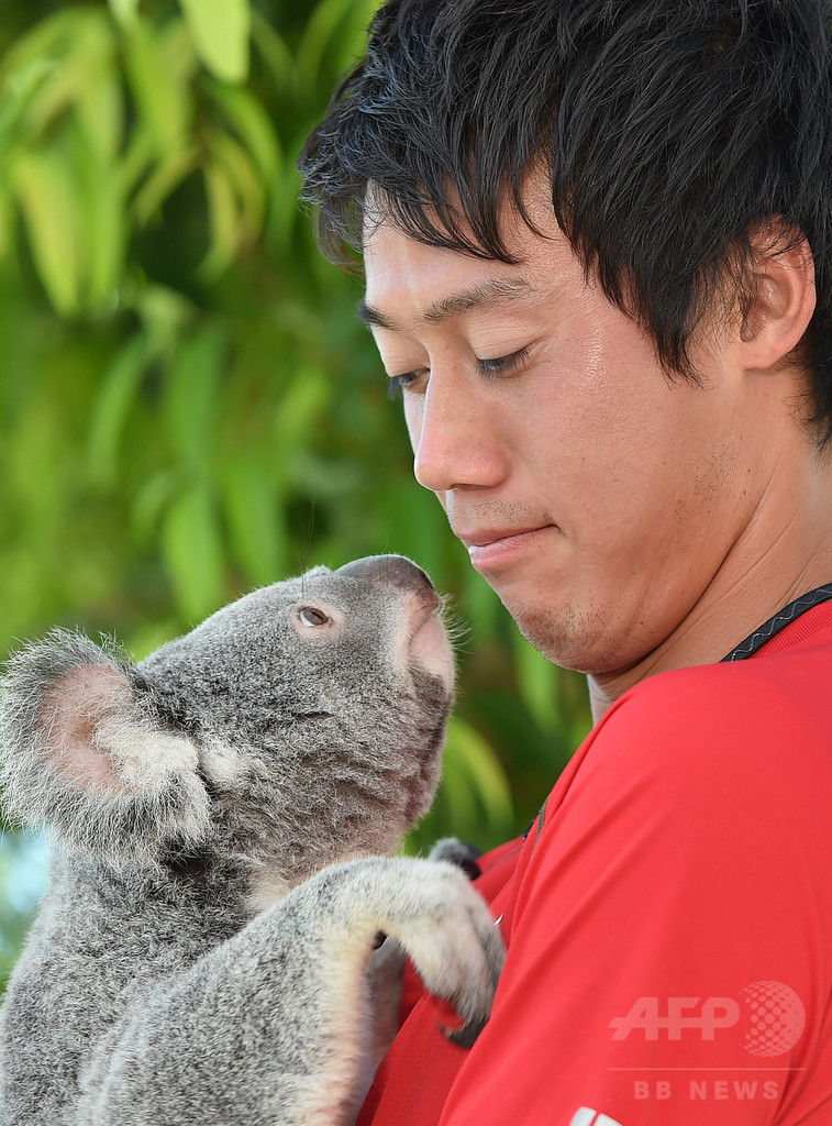 ブリスベーン国際出場の錦織がコアラとたわむれる