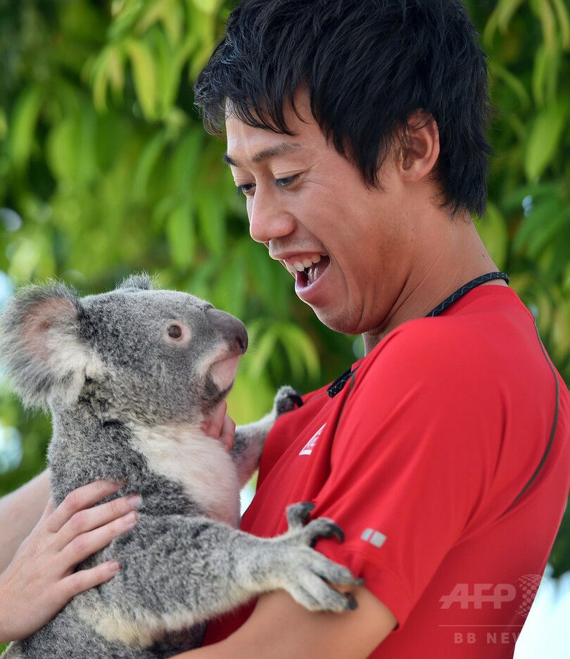 ブリスベーン国際出場の錦織がコアラとたわむれる