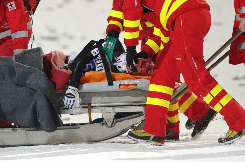 五輪で通算4つの金メダルを獲得しているアマンは、6日にオーストリアのビショフスホーフェン(Bischofshofen)で行われたジャンプ週間(Vierschanzentournee)最終戦の2本目で、着地に失敗した。136.0メートルの大ジャンプを見せたアマンは、両脚を開いたまま頭部から雪に突っ込んだ。顔面は傷つき、意識不明の状態で担ぎ出された。