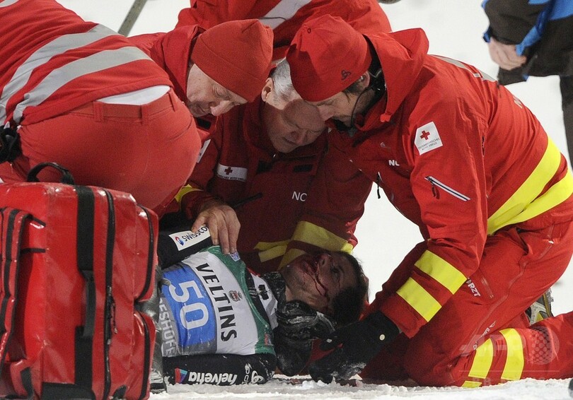 五輪で通算4つの金メダルを獲得しているアマンは、6日にオーストリアのビショフスホーフェン(Bischofshofen)で行われたジャンプ週間(Vierschanzentournee)最終戦の2本目で、着地に失敗した。136.0メートルの大ジャンプを見せたアマンは、両脚を開いたまま頭部から雪に突っ込んだ。顔面は傷つき、意識不明の状態で担ぎ出された。