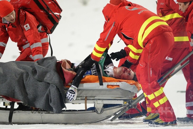 五輪で通算4つの金メダルを獲得しているアマンは、6日にオーストリアのビショフスホーフェン(Bischofshofen)で行われたジャンプ週間(Vierschanzentournee)最終戦の2本目で、着地に失敗した。136.0メートルの大ジャンプを見せたアマンは、両脚を開いたまま頭部から雪に突っ込んだ。顔面は傷つき、意識不明の状態で担ぎ出された。