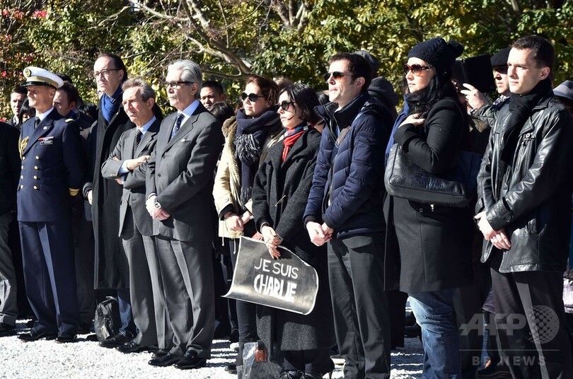 【1月8日 AFP】フランスの風刺週刊紙シャルリー・エブド(Charlie Hebdo)の本社が襲撃され12人が殺害された事件を受け、東京都内の駐日フランス大使公邸で8日、日本に暮らすフランス人たちが追悼集会を開き、黙とうをささげた。(c)AFP