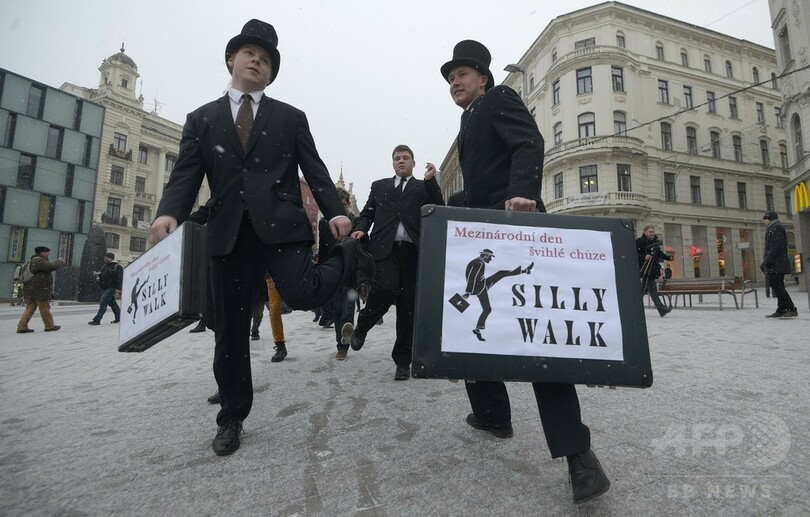【1月8日 AFP】チェコ・ブルノ(Brno)で7日、英コメディーグループ「モンティ・パイソン(Monty Python)」の人気コント作品「バカ歩き省(The Ministry of Silly Walks、シリー・ウォーク)」をまねて、ふざけた歩き方の「技術」を披露するイベントが開催された。