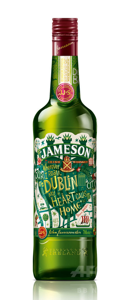 創業からほぼ変わらずにボトルのデザインを守り続けている「ジェムソン」が、アイルランド最大の祝祭、セント・パトリックス・デー(St. Patrick's Day)を記念してこのシーズンだけ装いを変える。今年のデザインボトルを手がけたのは、アイルランドの首都、ダブリンを拠点としているイラストレーター、スティーブ・シンプソン(Steve Simpson)。ラベルには「どこに行っても、ダブリンこそ、心のふるさと」という意味のメッセージがダブリンの地図と共に描かれている。
