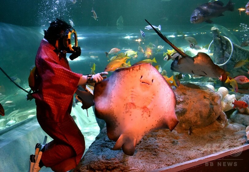 ニュース ライフ 晴れ着姿で餌付けショー、東京・しながわ水族館 2015年1月9日 16:06 発信地:東京 [ アジア・オセアニア 東京 ] このニュースをシェア ‹ › ❮ 6/7 ❯ 東京・品川にある「しながわ水族館(Shinagawa aquarium)」で、エイに餌付けする晴れ着姿の女性ダイバー(2015年1月8日撮影)。(c)AFP/Yoshikazu TSUNO 画像作成中 ! 【1月9日 AFP】東京・品川にある「しながわ水族館(Shinagawa aquarium)」では新年のイベントして、晴れ着姿のダイバーによる餌付けショーが開催されている。イベントの会期は12日まで。(c)AFP ライフ 一覧へ> メディア・報道関係・法人の方向け 写真・動画 購入のお問合せ>