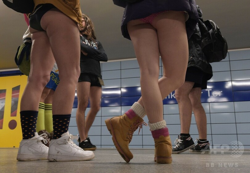 【1月12日 AFP】上半身や足元は普段通りでも、下半身はズボンやスカートを履かずに下着一枚で地下鉄に乗車するイベント「No Pants Subway Ride(パンツなしで地下鉄に乗ろう)」が11日、世界の数十都市で開催された。このイベントは2002年、公共の場で即興のパフォーマンスを行う米ニューヨーク(New York)のグループ「インプロブエブリウェア(Improv Everywhere)」がメンバー7人で始めたもので、現在では国際的なイベントとして毎年1月に世界中で一斉に行われている。(c)AFP