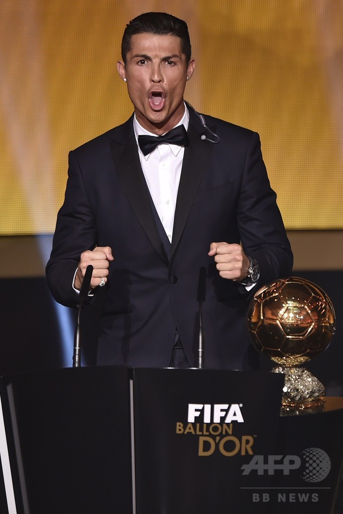 【1月13日 AFP】2014年の国際サッカー連盟(FIFA)表彰が12日、スイスのチューリヒ(Zurich)で開催され、スペイン1部リーグのレアル・マドリード(Real Madrid)に所属するポルトガル代表のクリスティアーノ・ロナウド(Cristiano Ronaldo)が、3度目の世界年間最優秀選手「FIFAバロンドール(FIFA Ballon d'Or)」に輝いた。