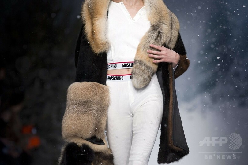 11日には、ジェレミー・スコット(Jeremy Scott)が手がける「モスキーノ(Moschino)」が新作を発表した。(c)AFP
