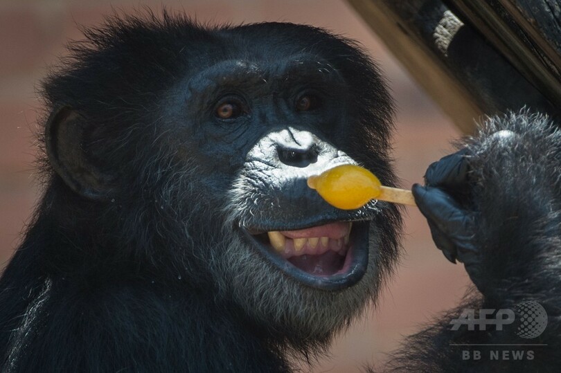 アイスを頬張るチンパンジー、猛暑ブラジル・リオ