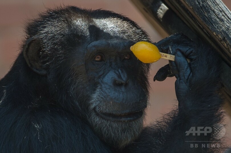 アイスを頬張るチンパンジー、猛暑ブラジル・リオ