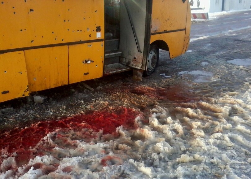 ウクライナ政府軍と地元警察はいずれもAFPに対し、この砲弾により女性7人と男性4人が死亡したと伝えた。また地元当局によると負傷者は17人で、バスが砲撃を受けたドネツクの南西35キロに位置するボルノバハ(Volnovakha)付近の病院に搬送されたという。
