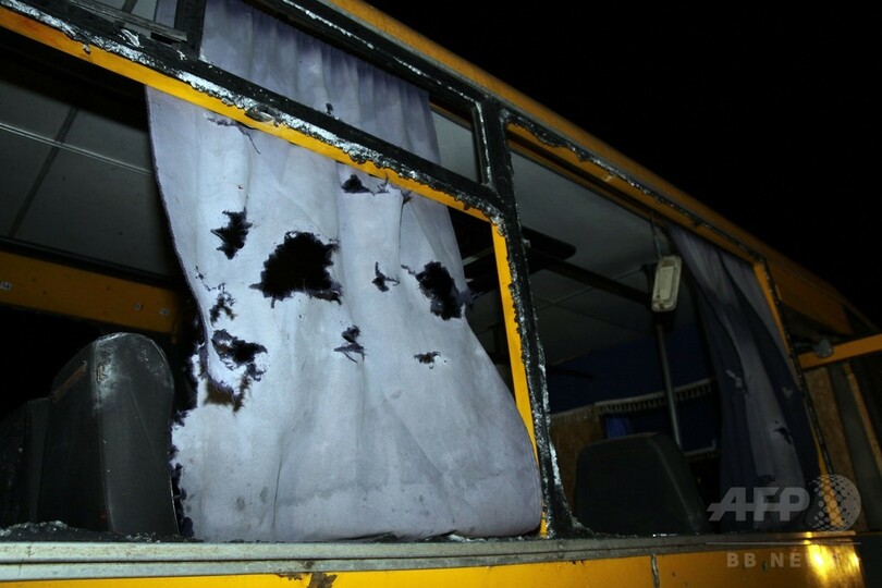 地元警察は、親露派の拠点ドネツク(Donetsk)とアゾフ海(Sea of Azov)に面するウクライナ南東部とを結ぶ幹線高速道路上に政府軍の兵士らが設置した検問所を標的として親露派がこのロケット弾を発射したが、狙いが外れてバスに当たったとみられるとしている。