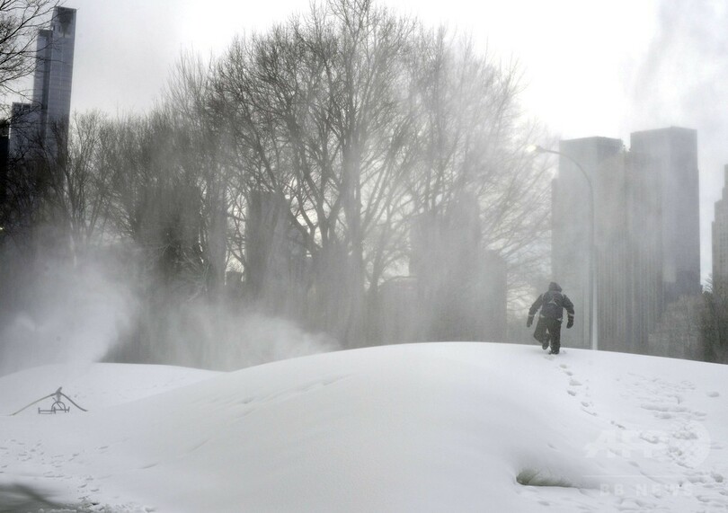 セントラルパークに猛吹雪?かすむ摩天楼、米NY