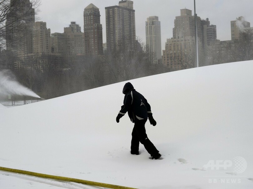 セントラルパークに猛吹雪?かすむ摩天楼、米NY
