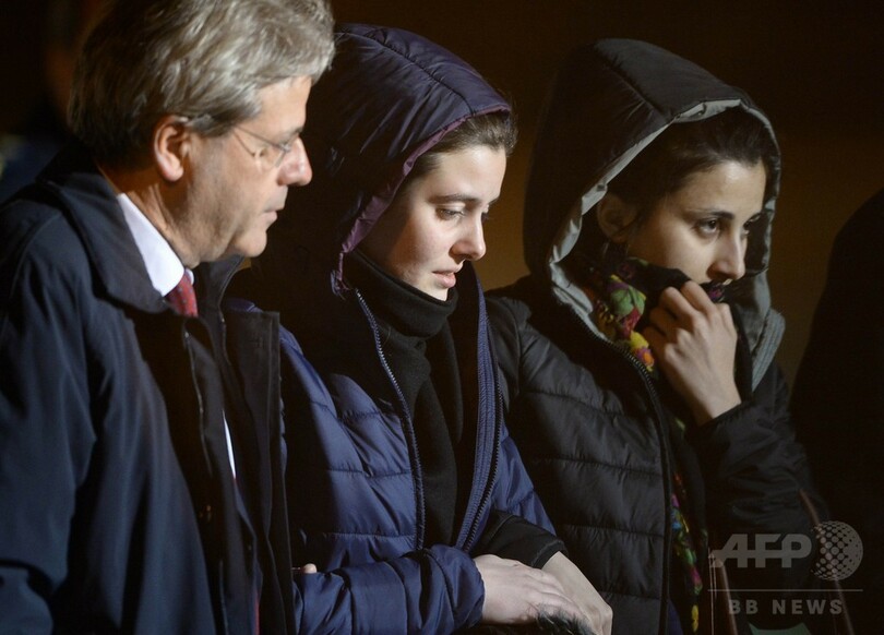【1月16日 AFP】イタリア政府は15日、昨年夏にシリアで拉致された援助活動家の女性2人が自由の身になったと発表した。2人はローマ(Rome)郊外のチャンピーノ(Ciampino)空港に16日午前4時(日本時間同日正午)ごろ、トルコから飛来した航空機で到着した。