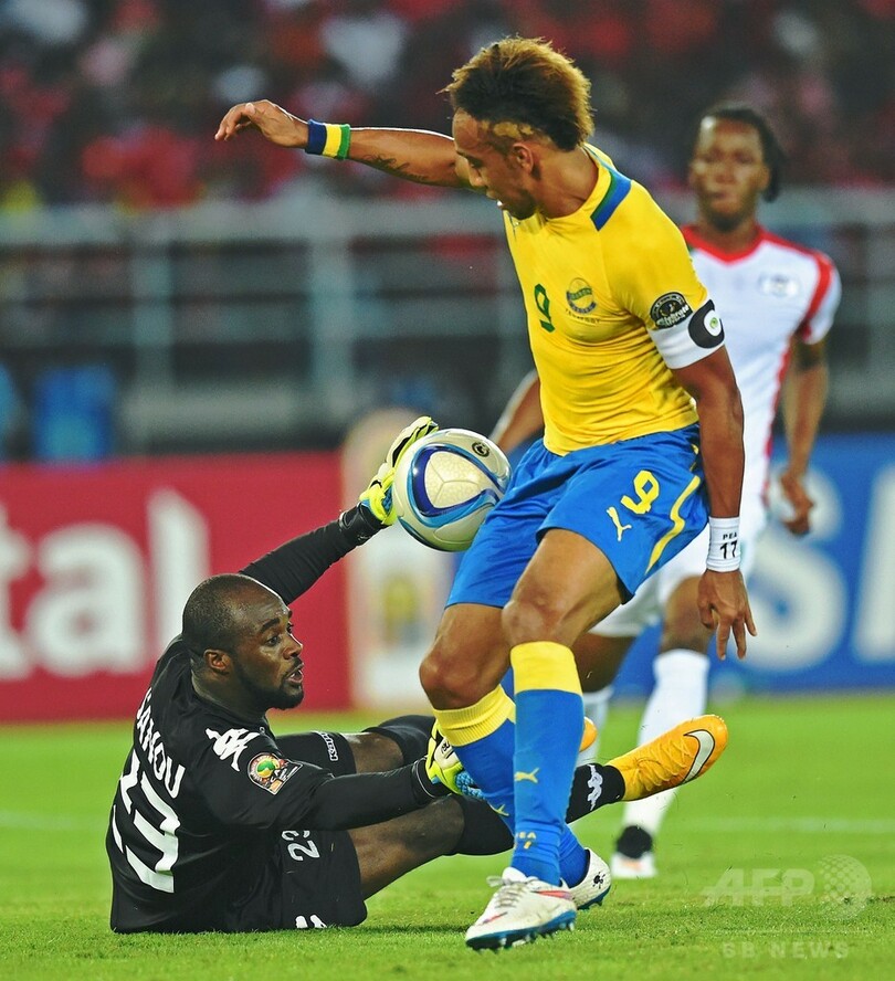 ドイツ・ブンデスリーガ1部のボルシア・ドルトムント(Borussia Dortmund)でプレーするガボンの主将オーバメヤンは、ブルキナファソのGKに決定的なシュートをセーブされたものの、そのこぼれ球を拾い冷静にゴールを決めた。