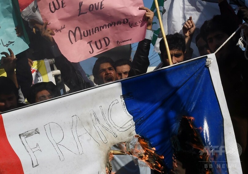 パキスタン南部のカラチ(Karachi)では、フランス領事館前で警官隊とデモの参加者が衝突し、背中に銃弾が当たったフランス通信(Agence France-Presse、AFP)のカメラマンを含む少なくとも3人が負傷した。