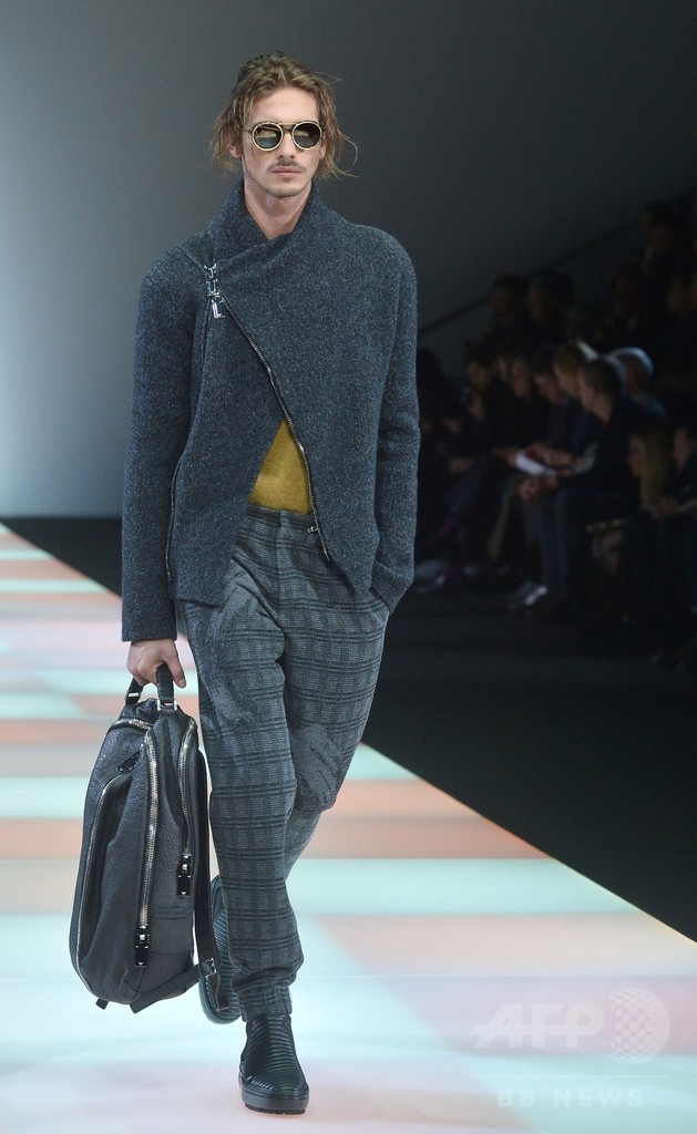 19日には、ジョルジオ・アルマーニ(Giorgio Armani)が手がける「エンポリオ アルマーニ(Emporio Armani)」が新作を発表した。(c)AFP