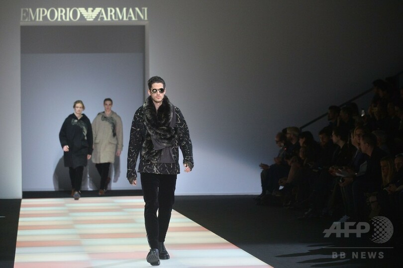 19日には、ジョルジオ・アルマーニ(Giorgio Armani)が手がける「エンポリオ アルマーニ(Emporio Armani)」が新作を発表した。(c)AFP
