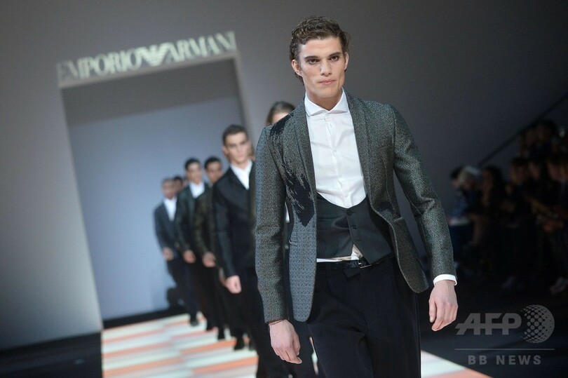 19日には、ジョルジオ・アルマーニ(Giorgio Armani)が手がける「エンポリオ アルマーニ(Emporio Armani)」が新作を発表した。(c)AFP