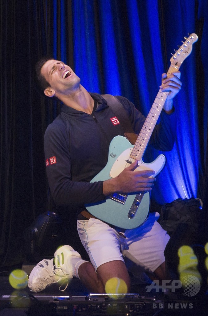 【1月26日 AFP】全豪オープンテニス(Australian Open Tennis Tournament 2015)に出場しているノバク・ジョコビッチ(Novak Djokovic、セルビア)が25日、豪歌手のキース・アーバン(Keith Urban)のホログラムとセッションを果たした。ジョコビッチは、ラケットをギターに見立てるなどして、場を盛り上げた。