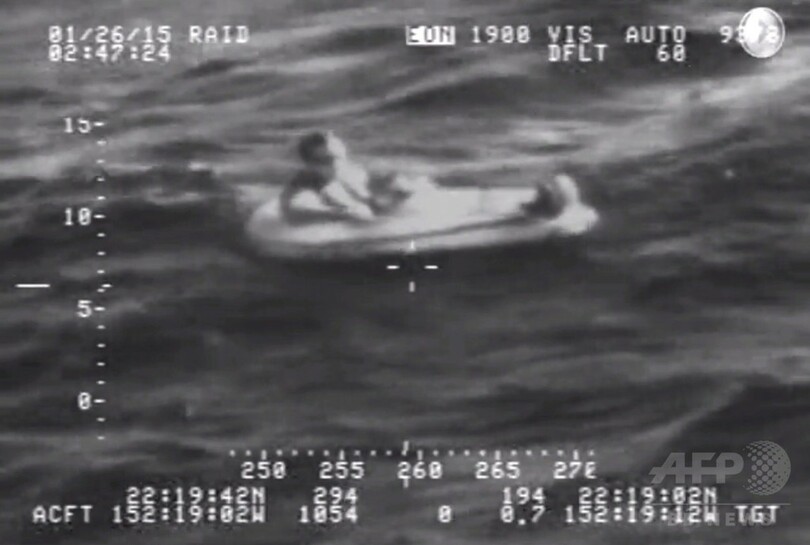 米沿岸警備隊の声明によると、サンフランシスコ(San Francisco)からハワイへの回送便として飛行していた同機は、25日午後に燃料不足に陥り、パラシュートを使って海上に不時着。映像には、不時着の直後に機体から出て小さな救命ボートに乗り込む操縦士が写されている。操縦士は約30分後に通りかかった旅客船によって救助された。(c)AFP