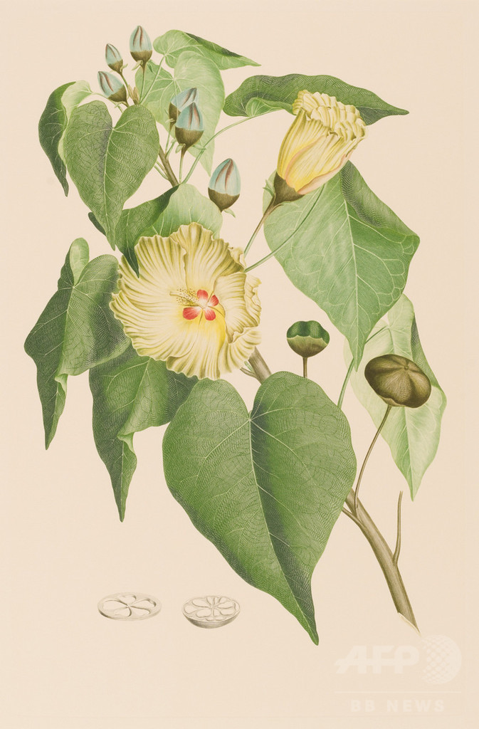 今回の展覧会では、全743点の植物が収められた『バンクス花譜集』のなかから120点を厳選。ソサエティ・アイランズ、ニュージーランド、オーストラリア、ジャワの4つの滞在地に分けて紹介されている。また太平洋地域の民族資料や航海道具、古地図、関連書籍なども展示。クックやバンクスが出会った自然や文化を時代背景とともに紹介している。
