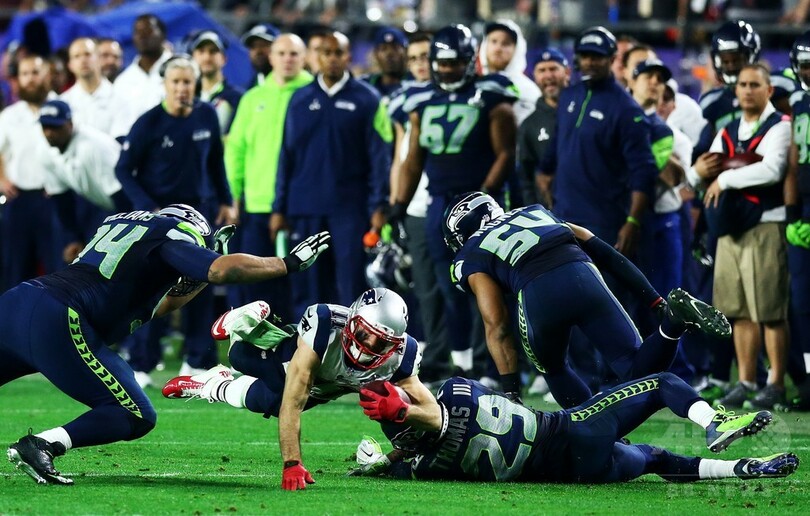 ナショナル・カンファレンス(NFC)決勝のグリーンベイ・パッカーズ(Green Bay Packers)戦で逆転勝利を挙げてスーパーボウル進出を決めたシーホークスは、終了間際にジャーメイン・カース(Jermaine Kearse)が驚きのキャッチをみせてペイトリオッツのエンドゾーン5ヤードのところまで詰め寄り、再び奇跡を引き起こすかと思われた。