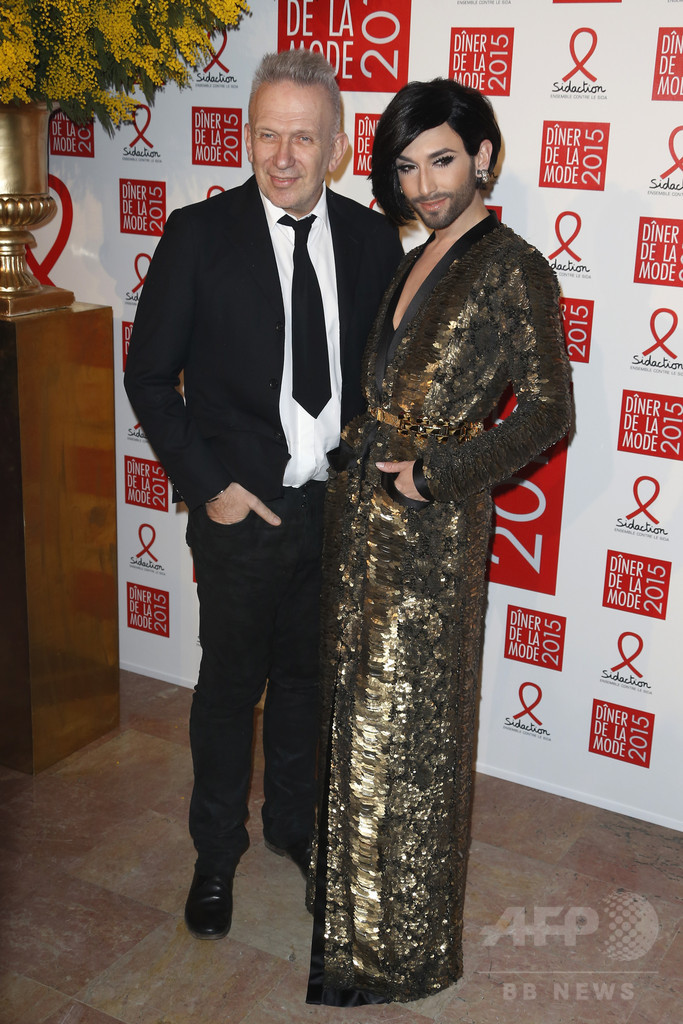 会場には、デザイナーのジャンポール・ゴルチエ(Jean-Paul Gaultier)、アレクシ・マビーユ(ALEXIS MABILLE)、ブルーノ・フリゾーニ(Bruno Frisoni)らのほか、「ひげ面の女装歌手」コンチータ・ウルスト(Conchita Wurst)、女優のカトリーヌ・ドヌーブ(Catherine Deneuve)、モデルのキャロライン・デ・メイグレ(Caroline de Maigret)、イネス・ド・ラ・フレンサンジュ(Ines de la Fressage)などそうそうたるゲストが姿を見せた。(c)AFP