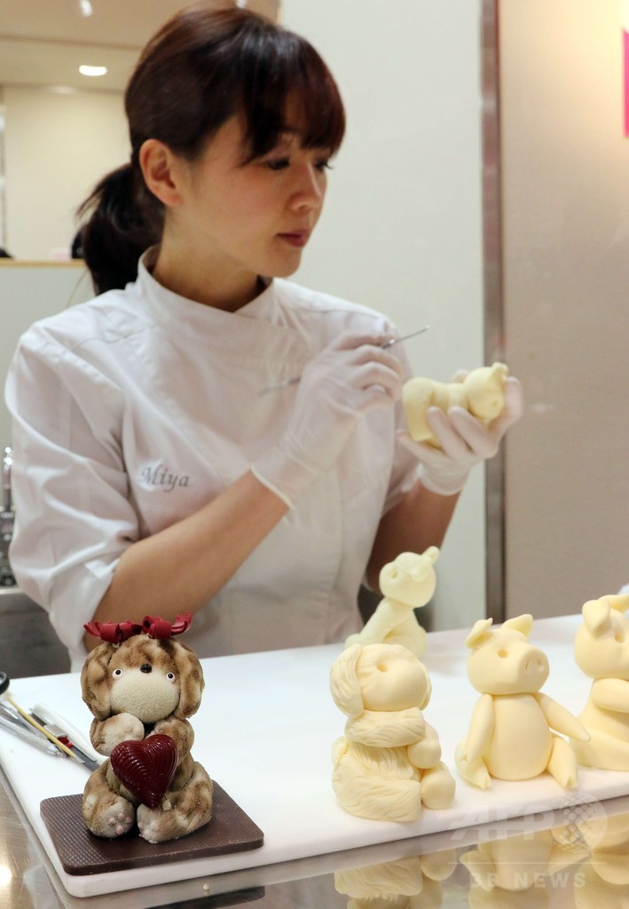 【2月5日 AFP】バレンタインデーに向けて高島屋(Takashimaya)日本橋店でショコラの祭典「アムール・デュ・ショコラ(Amour du Chocolat)」が開催されている。1階ホールには、パティスリー・エチエンヌ(Patisserie Etienne)のスイートアートデザイナー藤本美弥(Miya Fujimoto)さんが作った、マンガ「東京タラレバ娘(Tokyo Tarareba-musume)」のチョコフィギュア2体が展示された。材料には計300キロのチョコレートが使用されたという。(c)AFP