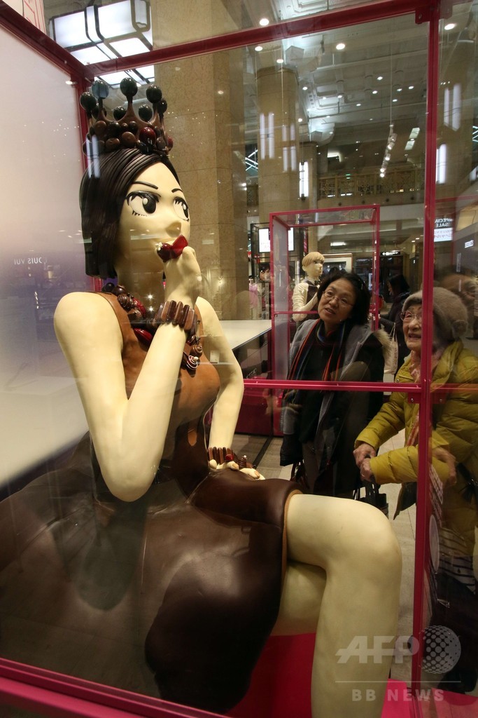 【2月5日 AFP】バレンタインデーに向けて高島屋(Takashimaya)日本橋店でショコラの祭典「アムール・デュ・ショコラ(Amour du Chocolat)」が開催されている。1階ホールには、パティスリー・エチエンヌ(Patisserie Etienne)のスイートアートデザイナー藤本美弥(Miya Fujimoto)さんが作った、マンガ「東京タラレバ娘(Tokyo Tarareba-musume)」のチョコフィギュア2体が展示された。材料には計300キロのチョコレートが使用されたという。(c)AFP