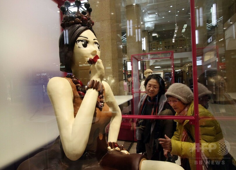【2月5日 AFP】バレンタインデーに向けて高島屋(Takashimaya)日本橋店でショコラの祭典「アムール・デュ・ショコラ(Amour du Chocolat)」が開催されている。1階ホールには、パティスリー・エチエンヌ(Patisserie Etienne)のスイートアートデザイナー藤本美弥(Miya Fujimoto)さんが作った、マンガ「東京タラレバ娘(Tokyo Tarareba-musume)」のチョコフィギュア2体が展示された。材料には計300キロのチョコレートが使用されたという。(c)AFP