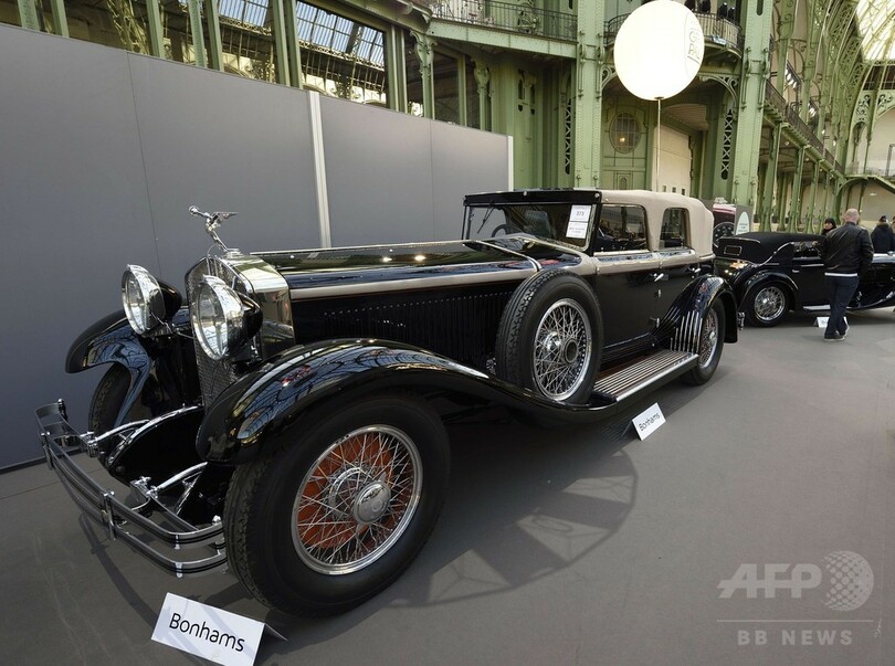 【2月5日 AFP】仏パリ(Paris)市内のイベント会場グランパレ(Grand Palais)で4日、英競売大手ボナムズ(Bonhams)主催のオークションに出品予定のクラシックカーやオートバイが多数展示された。前ローマ法王のサイン入りハーレーダビッドソン(Harley-Davidson)も注目一台となっている。(c)AFP