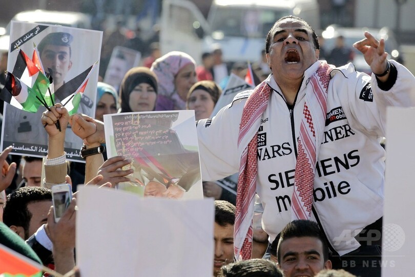カサスベ中尉の殺害でヨルダン国内には激しい怒りが巻き起こり、アンマンに加え、大きな影響力を持つカサスベ中尉の出身部族の地元カラクでも抗議行動が広がっている。6日のイスラム教の金曜礼拝後には、遺族への団結心を示すデモがヨルダン各地で行われることになっている。(c)AFP/Mussa Hattar