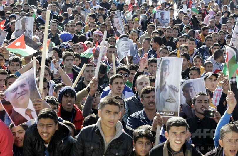 カサスベ中尉の殺害でヨルダン国内には激しい怒りが巻き起こり、アンマンに加え、大きな影響力を持つカサスベ中尉の出身部族の地元カラクでも抗議行動が広がっている。6日のイスラム教の金曜礼拝後には、遺族への団結心を示すデモがヨルダン各地で行われることになっている。(c)AFP/Mussa Hattar