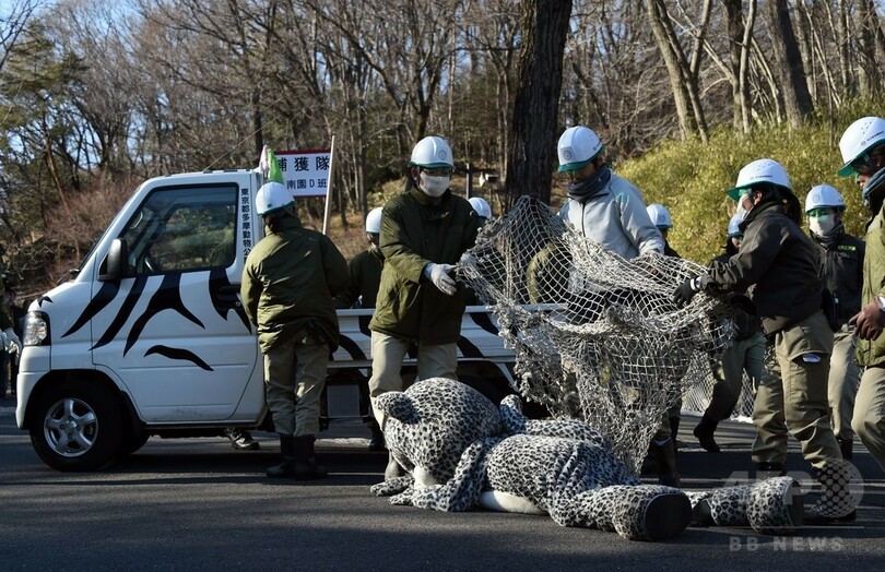 【2月11日 AFP】東京・日野市の多摩動物公園(Tama Zoological Park)で10日、飼育中の動物が逃走した場合を想定した毎年恒例の捕獲訓練が行われ、今年は約70人の職員が参加し、ユキヒョウの着ぐるみを着た職員との「大捕物」を繰り広げた。(c)AFP