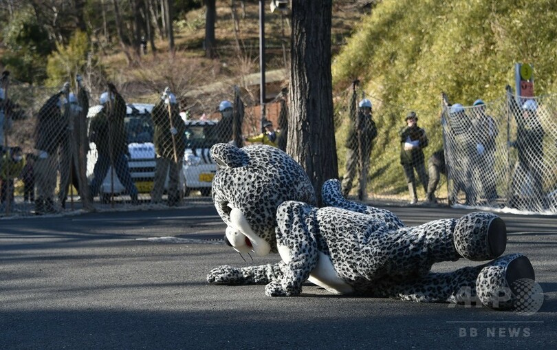【2月11日 AFP】東京・日野市の多摩動物公園(Tama Zoological Park)で10日、飼育中の動物が逃走した場合を想定した毎年恒例の捕獲訓練が行われ、今年は約70人の職員が参加し、ユキヒョウの着ぐるみを着た職員との「大捕物」を繰り広げた。(c)AFP