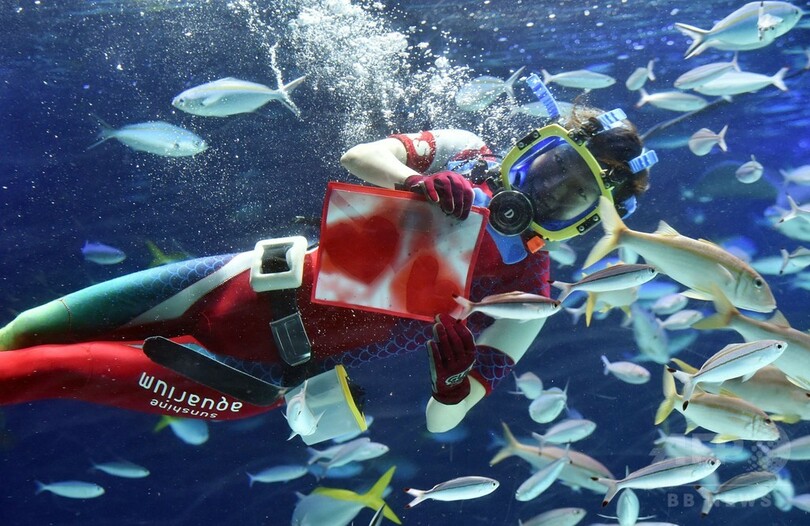 【2月11日 AFP】都内のサンシャイン水族館(Sunshine Aquarium)では、2月14日のバレンタインデーに合わせ、動物たちにバレンタインにちなんだプレゼントを贈るショーが開催されている。(c)AFP