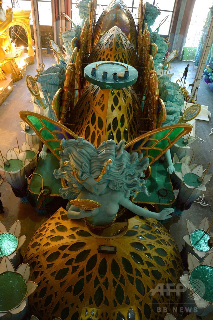 【2月12日 AFP】ブラジル・リオデジャネイロ(Rio de Janeiro)では、名物のカーニバル開幕を目前に控え、サンバスクールと呼ばれる参加各チームによる山車の制作が港近くの複合施設「サンバ・シティ(Samba City)」で大詰めを迎えている。今年のカーニバルは16、17日の2日間、サンボドロモ(Sambadrome)を主会場に行われる。(c)AFP