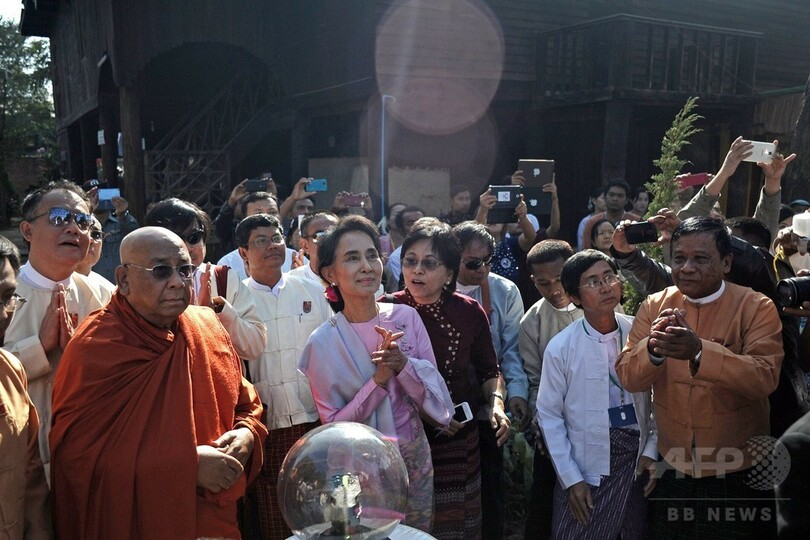 【2月13日 AFP】ミャンマー最大野党・国民民主連盟(NLD)のアウン・サン・スー・チー(Aung San Suu Kyi)党首は13日、同国独立の英雄で自らの父であるアウン・サン(Aung San)将軍の生誕100年を記念する祝賀行事に出席した。