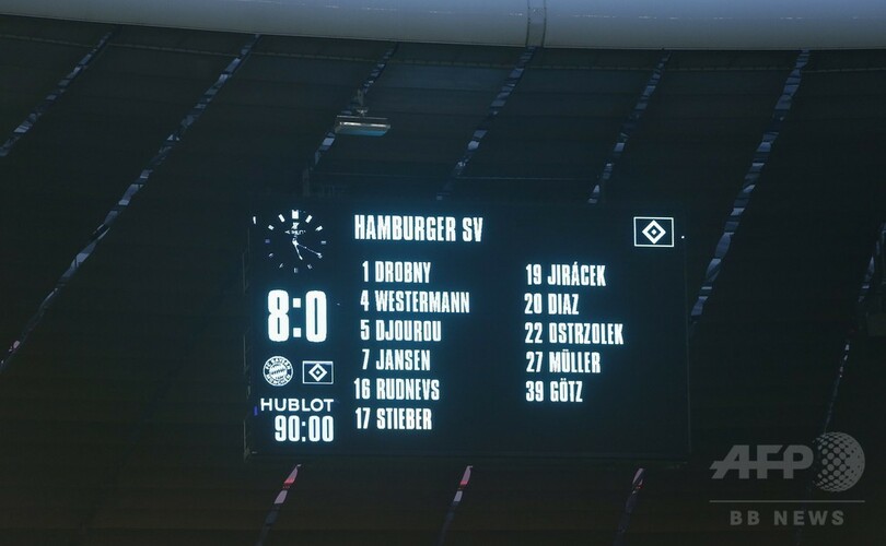【2月15日 AFP】ドイツ・ブンデスリーガ1部は14日、第21節の試合が行われ、バイエルン・ミュンヘン(Bayern Munich)が8-0でハンブルガーSV(Hamburger SV)に圧勝した。