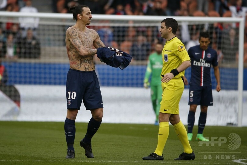 イブラヒモビッチはその後、シャツを脱いだ行為で主審からイエローカードを提示されている。