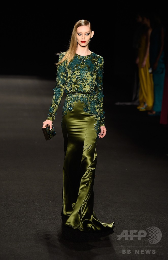 13日には、「モニーク・リュイリエー(Monique Lhuillier)」が新作を発表した。(c)AFP/Getty Images