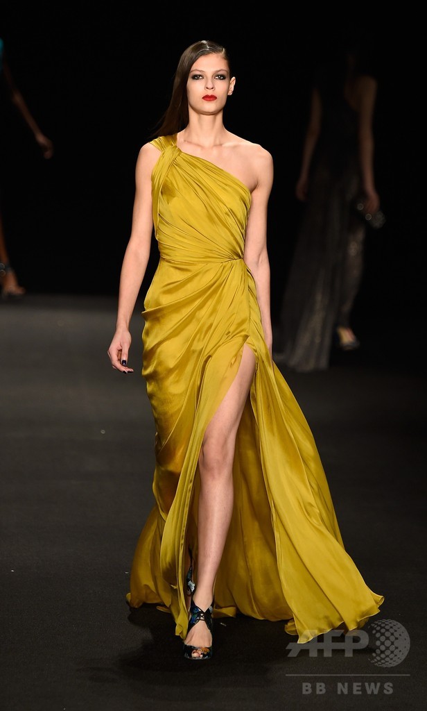 13日には、「モニーク・リュイリエー(Monique Lhuillier)」が新作を発表した。(c)AFP/Getty Images