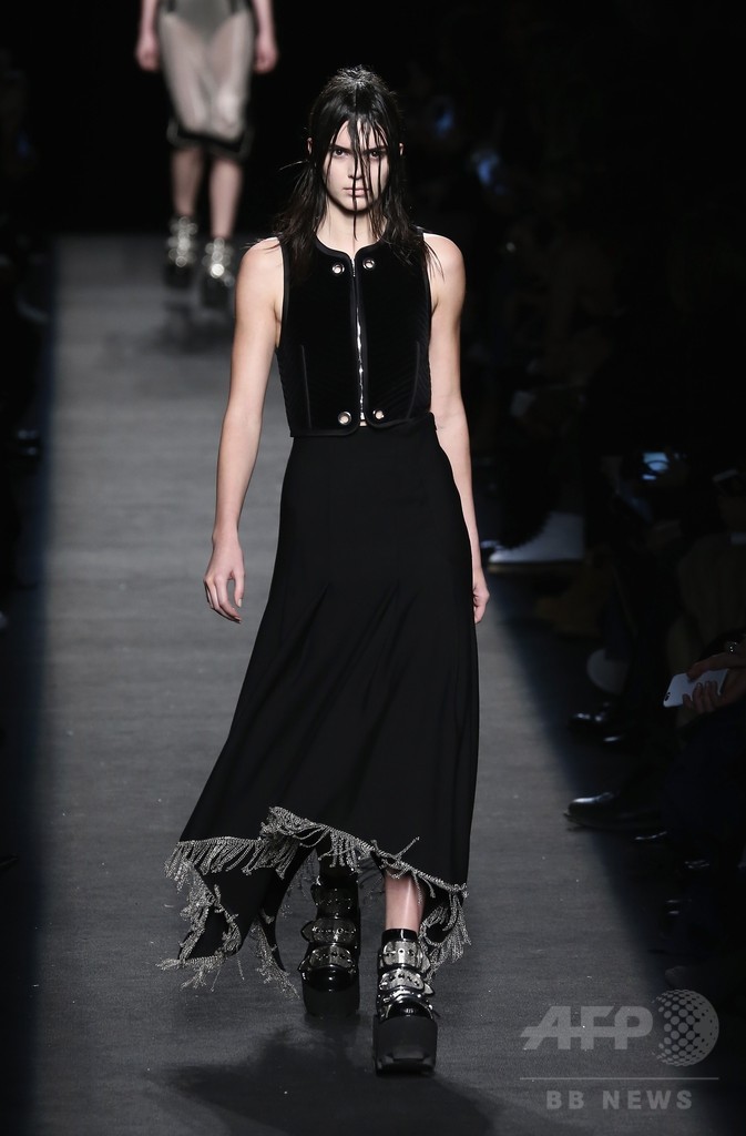 14日には、「アレキサンダー ワン(Alexander Wang)」が新作を発表し、ランウェイにはケンダル・ジェナー(Kendall Jenner)が登場した。(c)AFP