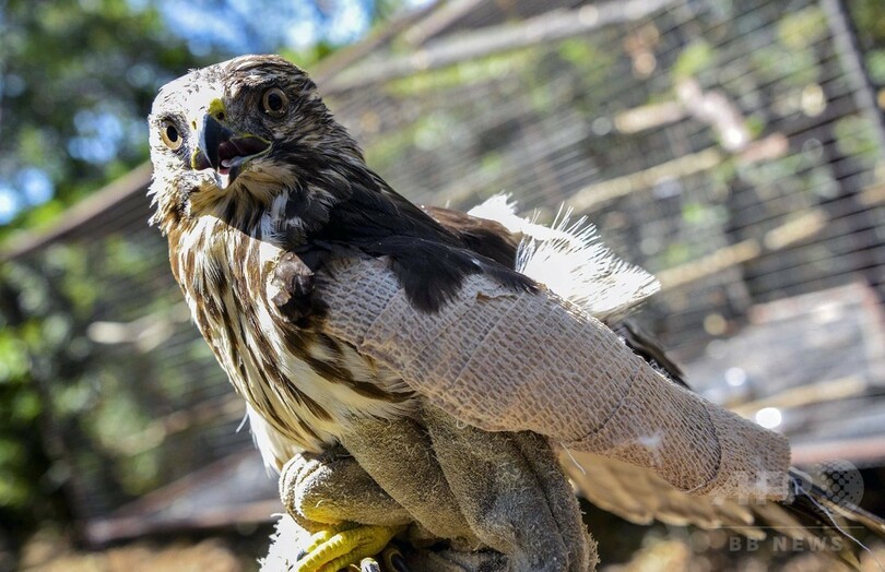 【2月18日 AFP】写真はコスタリカ第2の都市、アラフエラ(Alajuela)にある動物救護センターで、何者かに羽を折られたため治療を受けているタカと獣医師のカルメン・ソトさん。中南米諸国では動物が襲われる事例が少なくないにもかかわらず、動物虐待を処罰する法律の整備が不十分だったり、全く存在しなかったりする場合が多い。また動物虐待と闘う愛護団体などのネットワークも小規模で資金が不足気味だ。