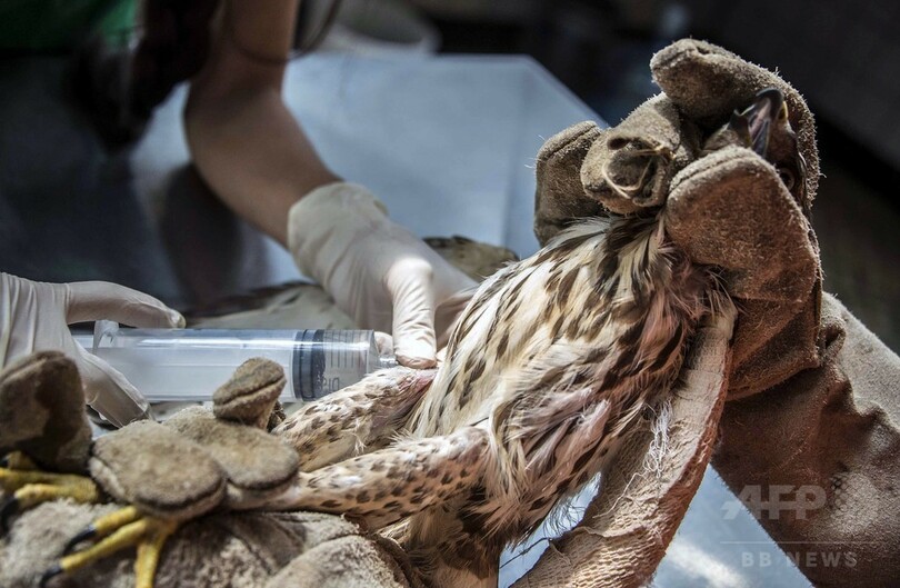 【2月18日 AFP】写真はコスタリカ第2の都市、アラフエラ(Alajuela)にある動物救護センターで、何者かに羽を折られたため治療を受けているタカと獣医師のカルメン・ソトさん。中南米諸国では動物が襲われる事例が少なくないにもかかわらず、動物虐待を処罰する法律の整備が不十分だったり、全く存在しなかったりする場合が多い。また動物虐待と闘う愛護団体などのネットワークも小規模で資金が不足気味だ。