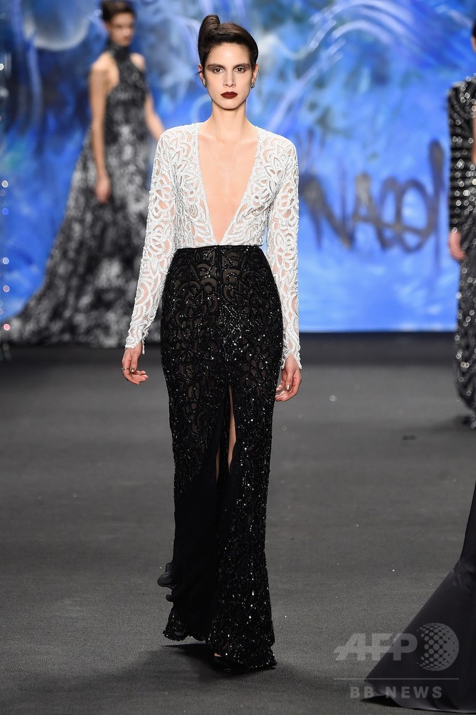 17日には、「ナイーム・カーン(Naeem Khan)」が新作を発表した。(c)AFP/Getty Images